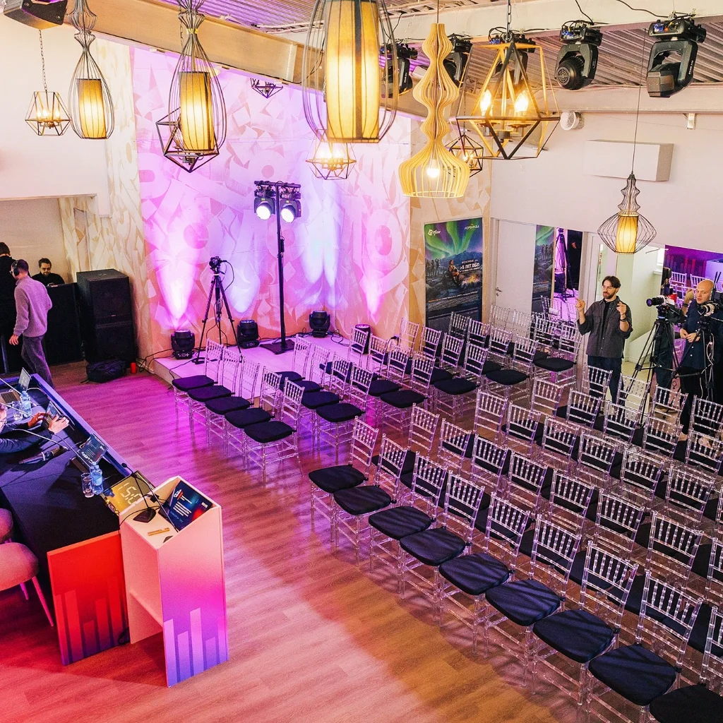 📺 Что установили: • Два LED-экрана с высоким разрешением — даже мелкий шрифт идеально читаем. • Каркас с баннерным оформлением. • Синхронизация всех мониторов в зале. • Дублирующий монитор для спикера, 4 монитора президиума, 3 ТВ-панели в публичных зонах, отдельный таймер-экран для выступающих. • Профессиональный кликер с цифровой указкой. • Конференц-микрофоны, звук по периметру, свет на тотемах и интерьерные подсветки.